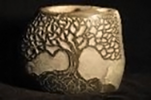 In addition, I make stone vessels. They come in a wide variety of sizes and natural colors. I use hand held tools which I customize to cut, shape and carve the rock. Many are enhanced with my own original designs. All artwork is original, one of a kind, and never repeated.